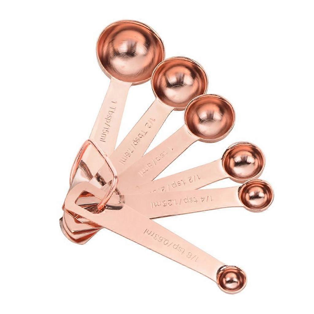 6pcs/set Rose Gold Plated Measuring Spoons Stainless Steel Baking Tea Coffee Kic