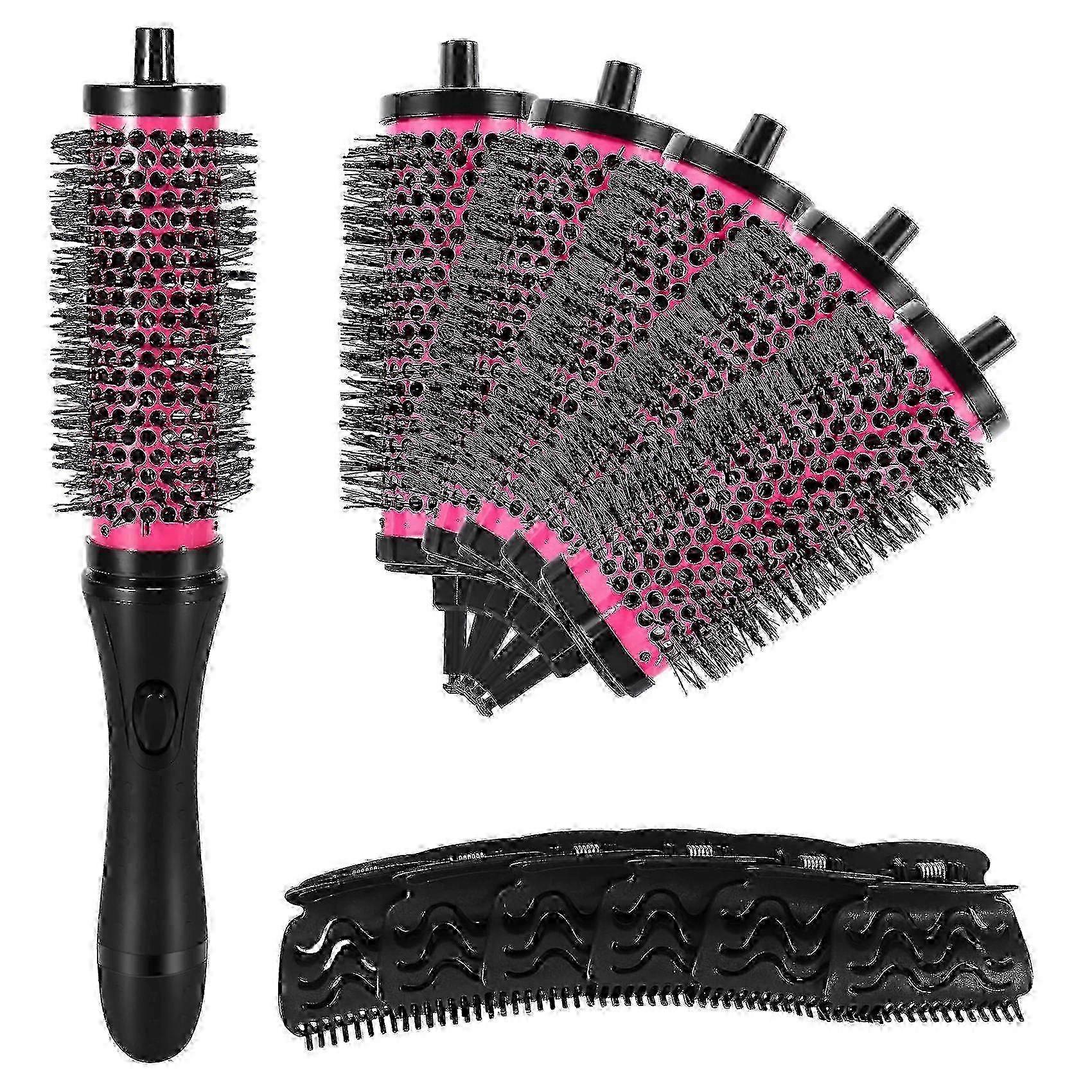 6pcs/set 3 Sizes Detachable Handle Hair Roller Brush with Positioning Clips Aluminum Ceramic Barrel Curler Comb Hairdresser