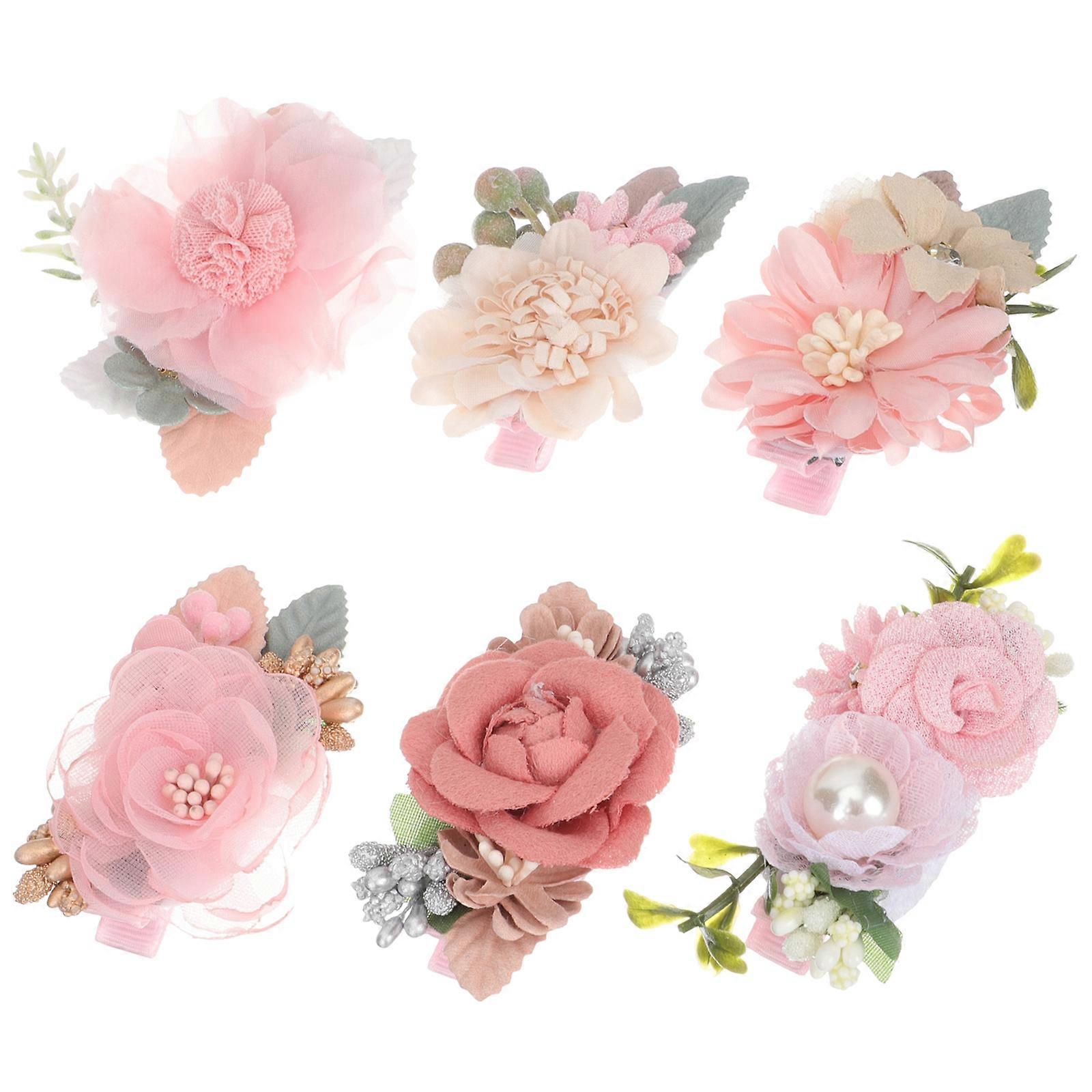 6PCS Floral Hair Barrettes with Clips for Birthdays, Family Photos, Showers – Cute Flower Hair Clips for Teens