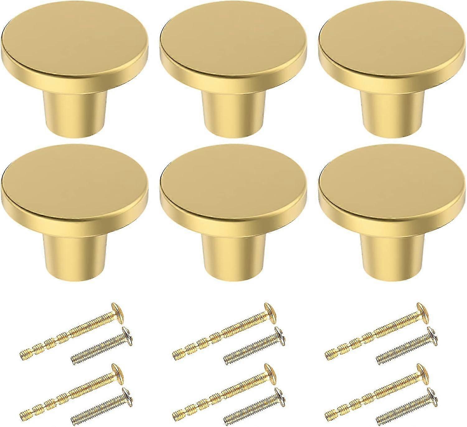 6 Pcs Brass Drawer Knobs, Round Kitchen Cabinet Knobs, Dresser Handles Pulls For Chest Of Drawers With Screws