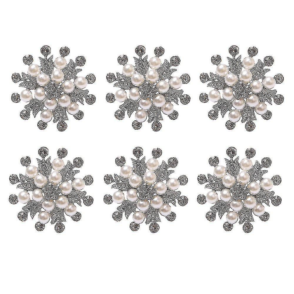 6 Pcs Napkin Rings Set Of Flower Pearl Rhinestone Napkin Ring Holder For Wedding Party Home Kitchen Dining Ta
