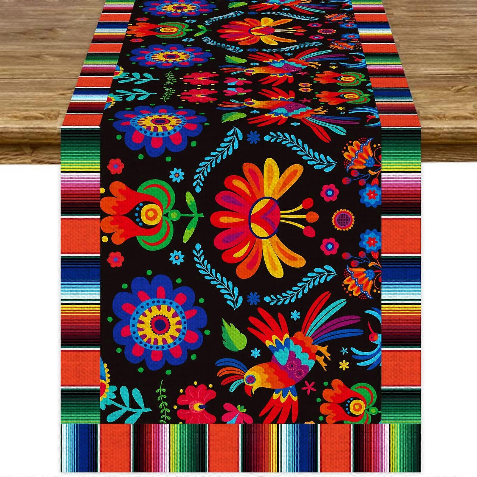 6 pcs Linen Mexican Fiesta Table Runner for Kitchen Dining Home Table Decoration 72×13inch.