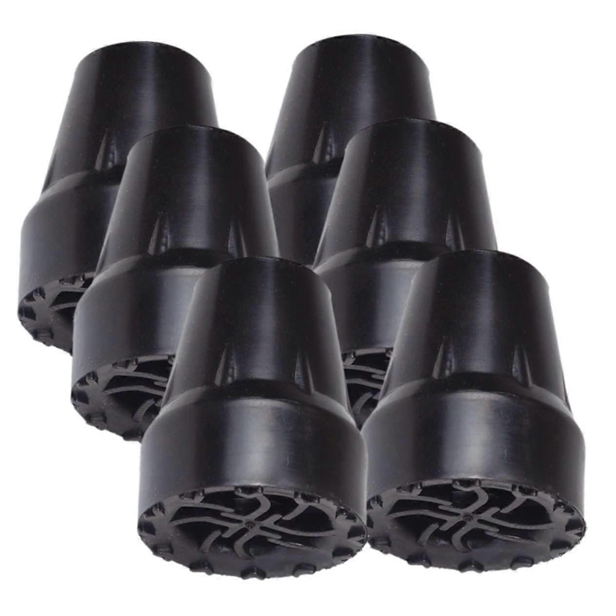 6Pcs Non Slip Rubber Crutch Tips for Trekking Poles and Walking Canes Thick Foot Covers for Enhanced Grip Stability and Shock Absorption Hole Black