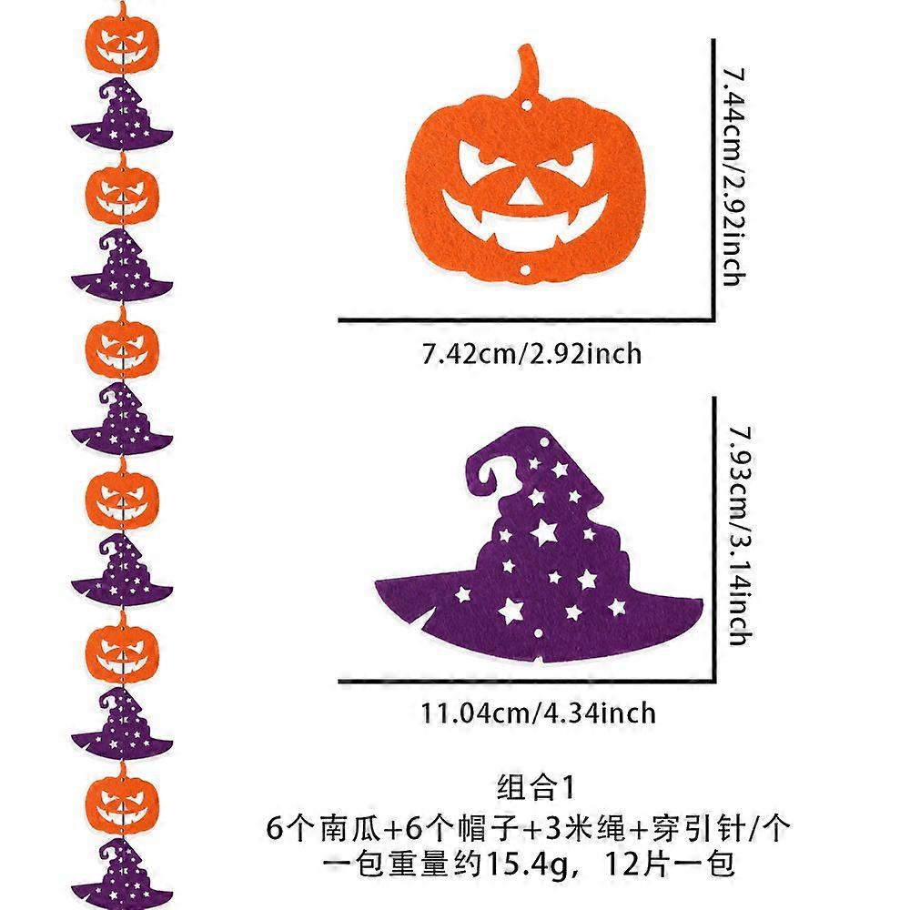 6pcs Halloween Pumpkin Hanging Decorations - Ghost Witch Hat String Garland for Indoor Outdoor Party Decoration Front Porch Wall and Yard