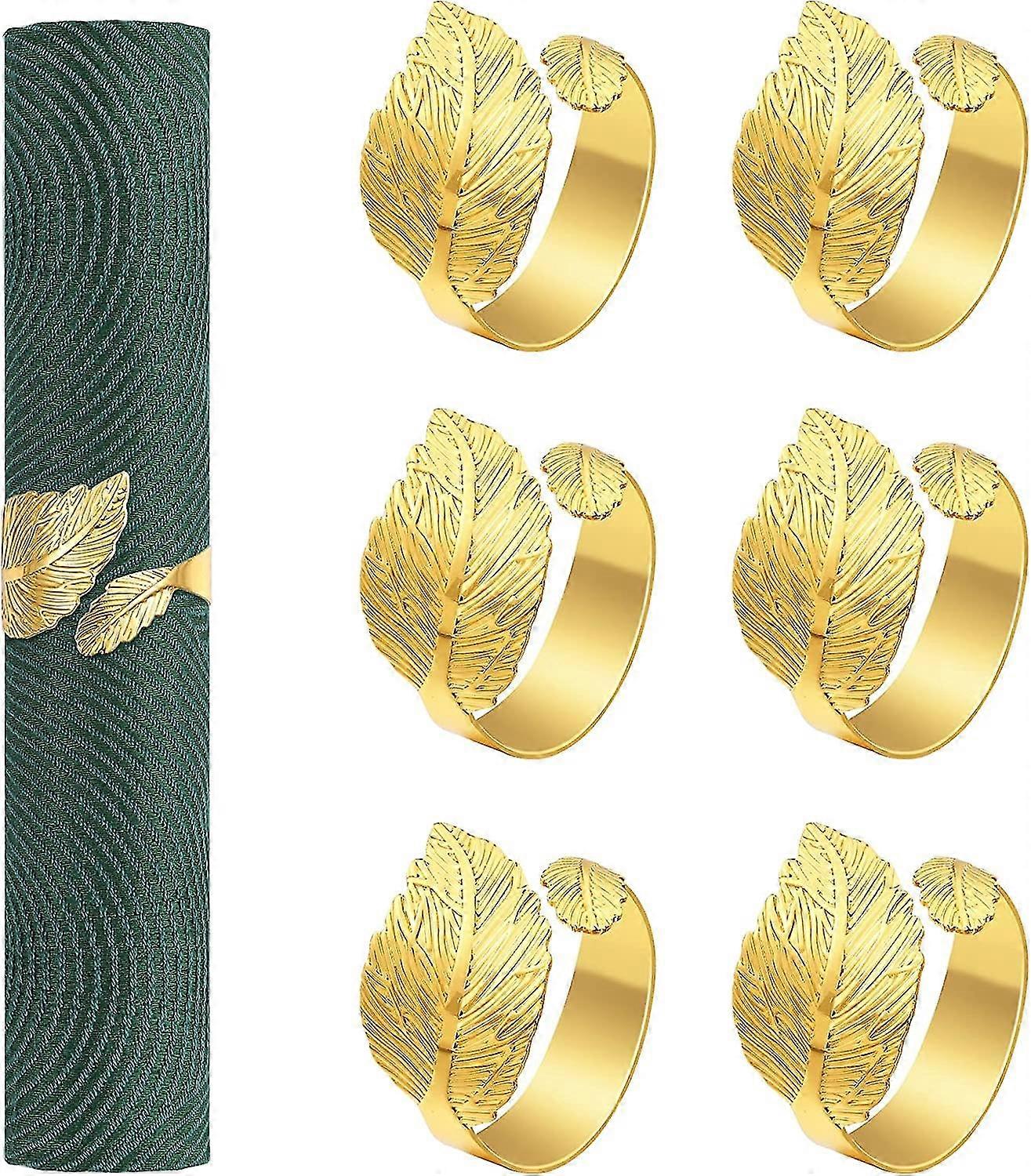 6 Pcs Leaf Shaped Metal Napkin Ring, Fade & Rust Resistant Exquisite