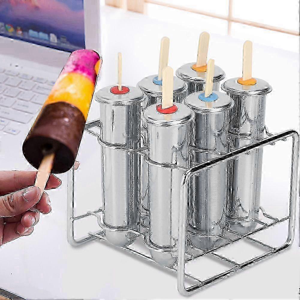 6PCS 304 Stainless Steel Round Head Round Cup Ice Cream Mold Popsicle Mold Double Groove