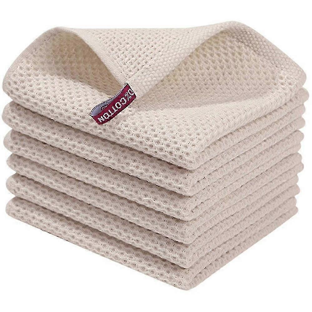 6Pcs 34x34cm Cotton Waffle Weave Kitchen Dish Towels Quick Cleaning Fast Absorbing Rag with Hanging