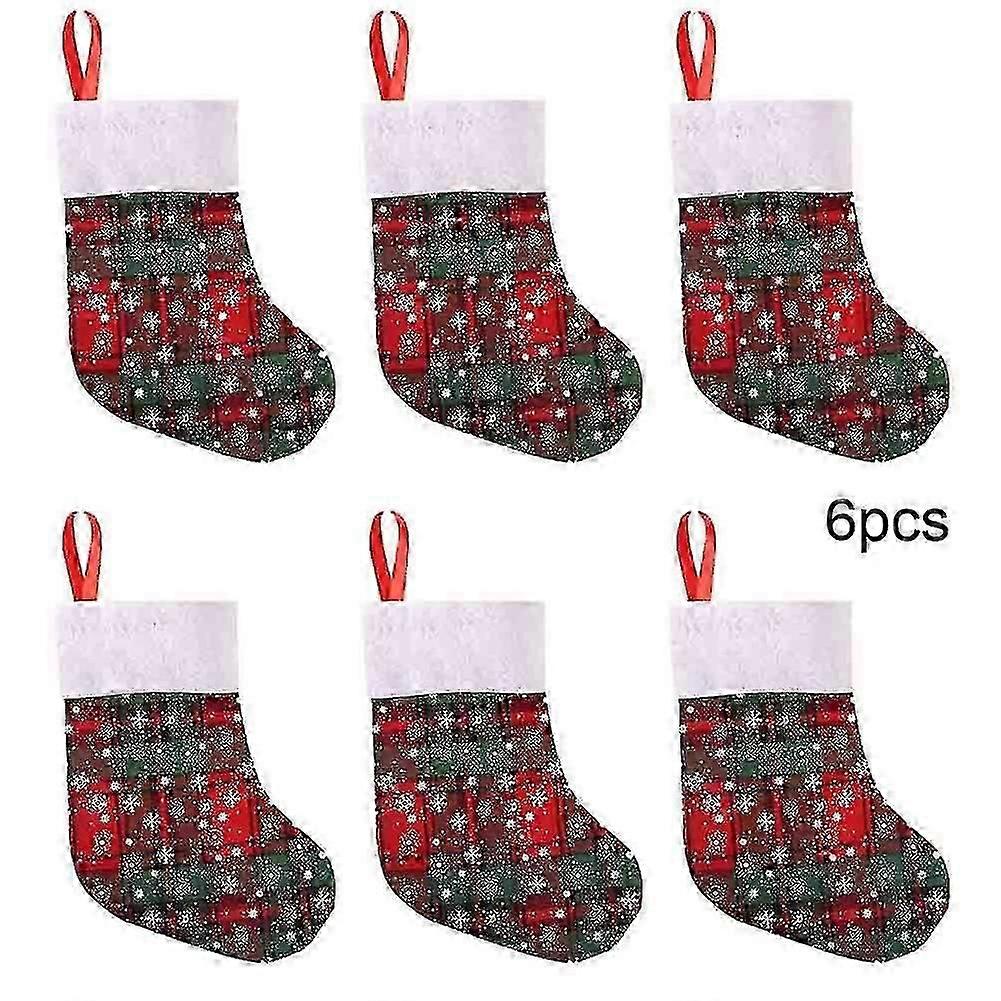 6pcs 9inch Red Plaid Christmas Stockings For Home Party Festive Ornament