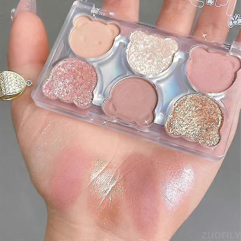 6-color Cute Bear Eyeshadow Palette Nude Purple Glitter Pearly Eye Shadow Matte Long Lasting Korean Eye Makeup Palette Cosmetics