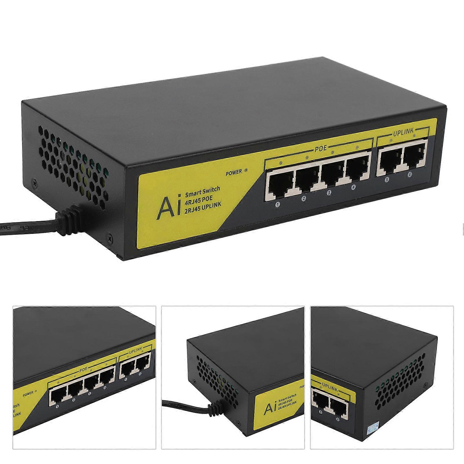 6 Port PoE Switch 4 10/100mbps POE Ports 2 10/100mbps UP Link Ports At 65W for IP Cameras WLAN Access Points IP Phones EU Plug