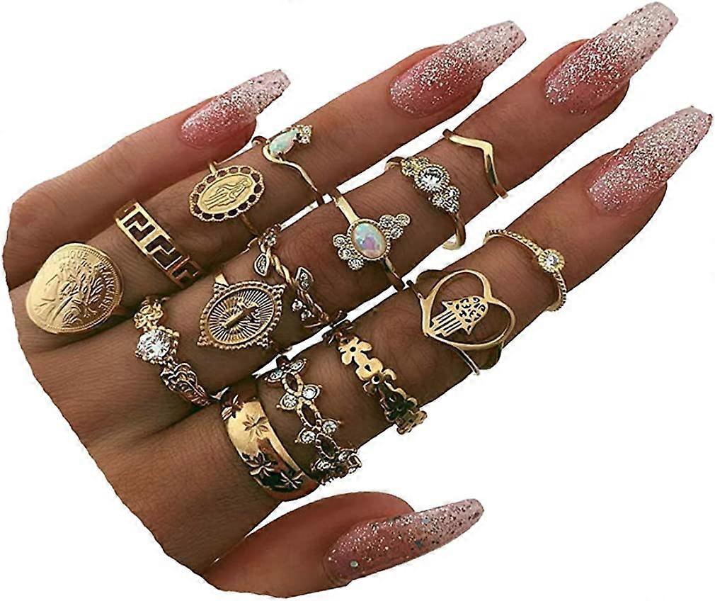 6-16 PCS Knuckle Stacking Rings for Women Teen Girls,Boho Vintage Finger Rings Stackable Gold Silver Midi Rings Set Multiple Rings Pack Size 5-10-