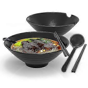 6-piece Ramen Bowl Set With 1000 Ml Filling Quantity - Traditional Japanese Crockery Set With Chopst - JA