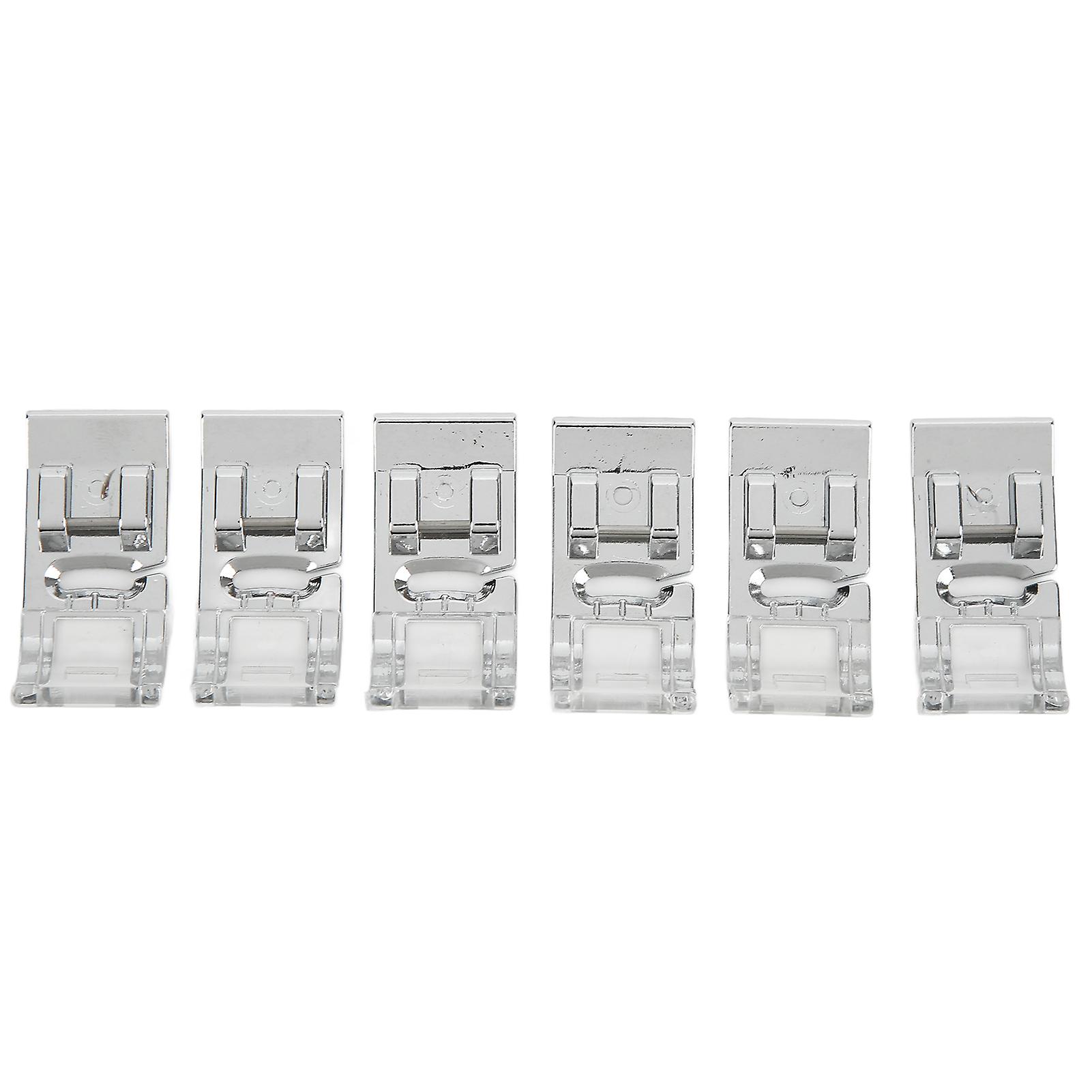 6pcs Satin Stitch Presser Foot Transparent Plastic Stainless Steel Material Burr Free Fixing Seams Sewing Feet