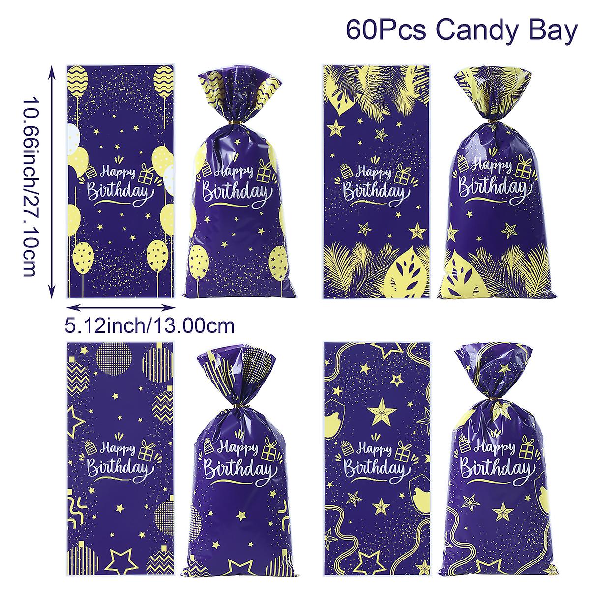 60pcs Black Gold Birthday Candy Gift Wrap Bag Plastic Gifts Packaging Happy Birthday Party Decoration Cookie Candy Bags
