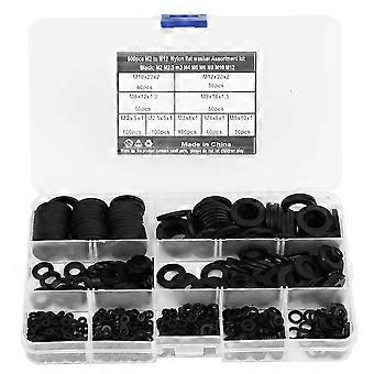 600Pcs Black Nylon Washer Gasket Combination Kit M2-M12 9 Sizes Hardware Supplies