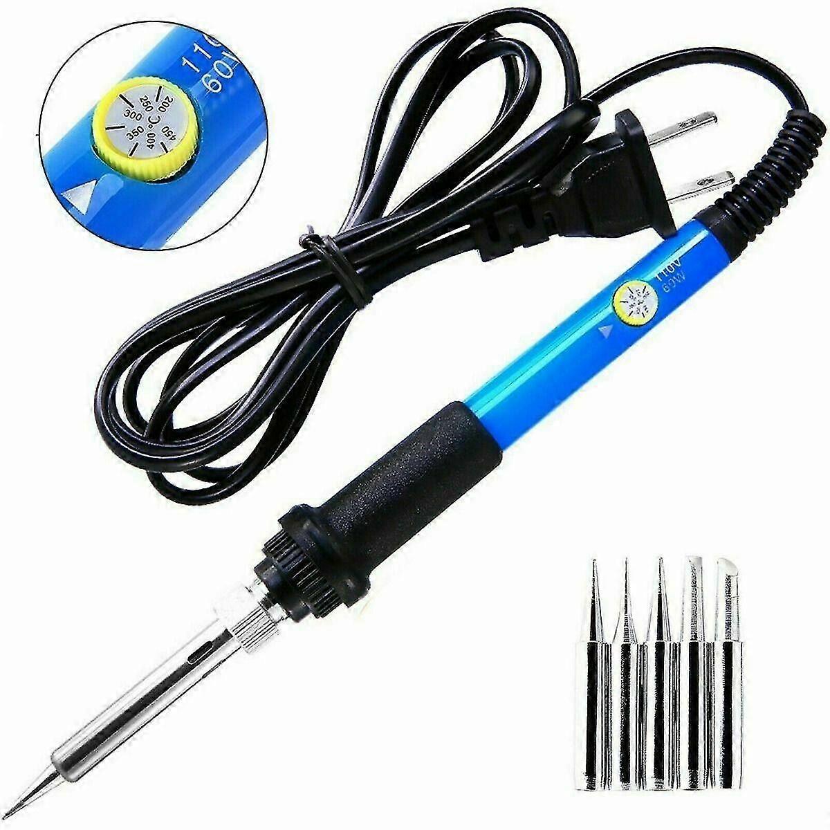 Professional Soldering Tool is great for lead-free soldering semiconductorsHigh quality long lasting ceramic type heater.LONG LIFE-Iron plated tip and stainless steel construction offer longer steel construction offer longer life.60 watts, heat up quickly(2 minutes or so). Adjustable temperature with thermostat range 200~450. With our upgrade steel-pipe design, the soldering iron is more efficient in a better heat dissipation.The soldering sets are the best gift idea for DIYER, various repaired usage of electronics and chip boards, welding, jewelry, guitar, watches, wiring, mobile device, computers hardware, small electronic work, TV capacitors or accessories, trinkets of your children, crafts and more.Features: