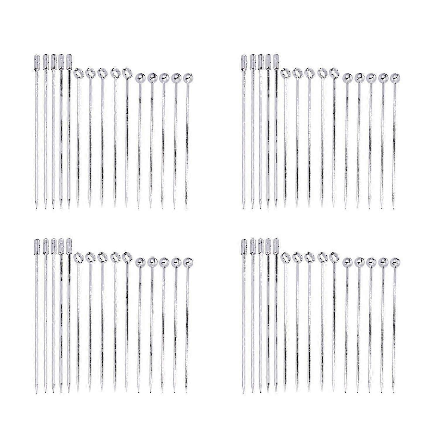 Great for olives, citrus, cherries, fruit garnish in your cocktails.These cocktail picks are styled to match what youll find in some of the worlds best cocktail bars and top bartender competitions.Made of professional food-grade Stainless Steel 304 and dishwasher safe for home or commercial dishwashers, these picks are designed to last a lifetime.Dont throw a toothpick or plastic pick with every cocktail you make - reuse these instead. Splinter-free and designed to last, youll never have to buy cocktail picks again.Theyre great for olives, cherries, citrus or fruit garnishes in your cocktails, and they make great hors d'oeuvres picks as well. Perfect for your next cocktail party.Color: SilverSize: 11cmMaterial: Stainless steelProfessional Grade All-Stainless Steel Cocktail Pick SetDesigned by a career bartender for bartenders and serious cocktail enthusiasts. These cocktail picks are perfect for use behind craft cocktail bars, in elite bartending competitions and at home bars worldwide.Why Use Cocktail Picks?Cocktail Picks are both beautiful and useful - they provide a perfect presentation for your Olives or ied Cherries, as well as thousands of other creative cocktail garnishes. Use these picks to:Spear Melon for the top of your Melon Ball CocktailSuspend fresh cranberries in your Cosmopolitan or raspberries in your Lemon DropThe possibilities are endless Reusable, Good for the Environment and Dishwasher SafeUnlike bamboo or plastic cocktail picks, these stainless steel picks will last a lifetime, and don't contribute to the landfill.Made out of durable SS304 food-grade stainless steel, they will not rust, bend or break. They are safe for commercial or home dishwashers alike. (Be careful to make sure they won't fall through the rack )Package Contents:20 x Ball head picks20 x circle head picks20 x cylinder head picksOnly the above package content, other products are not included.Note: Light and different displays may cause the color of the item in the picture a little different from the real thing. The measurement allowed error is +/- 1-3cm.