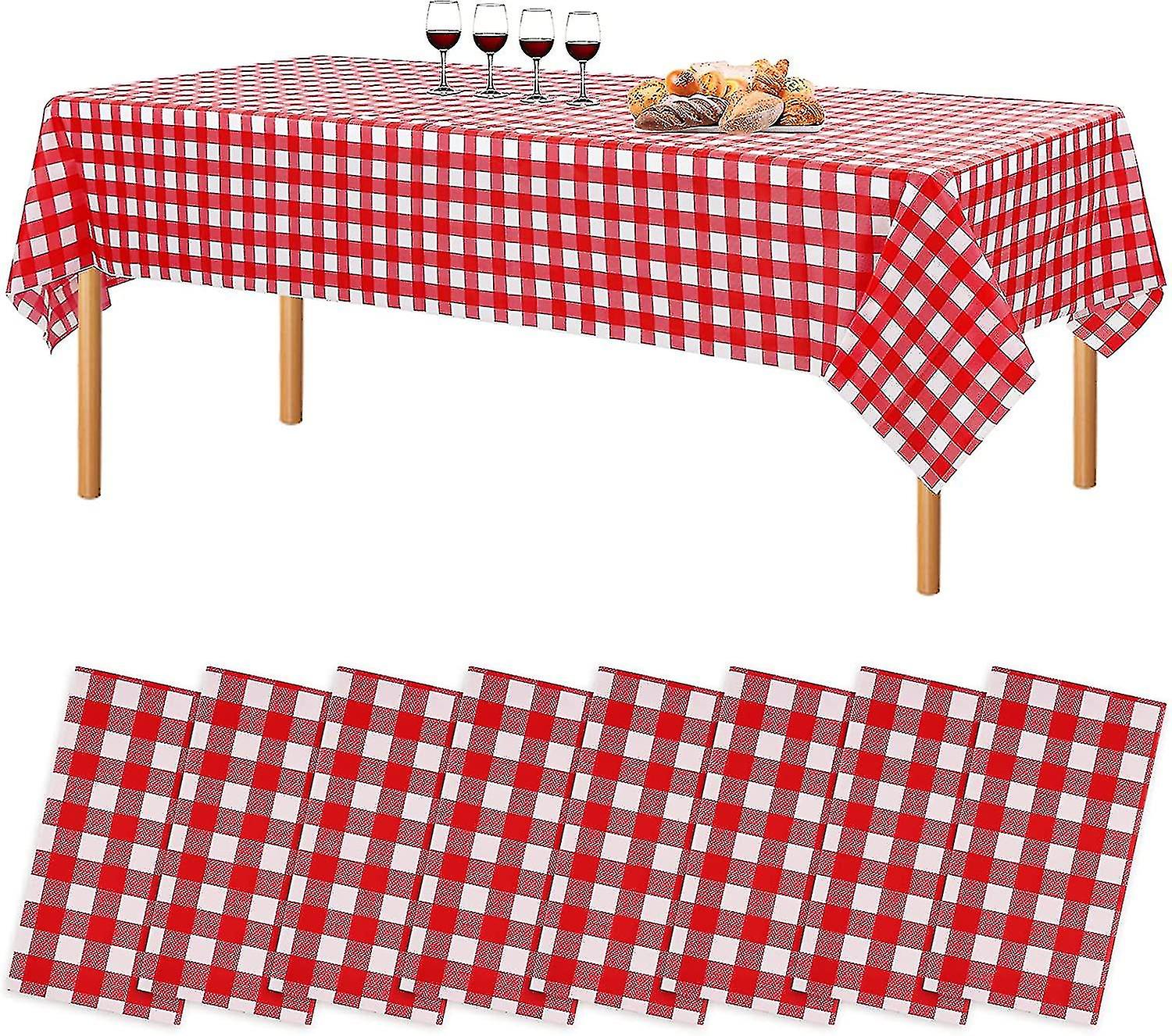 6/8/12 Packs Disposable Red Gingham Plastic Tablecloth 54" X 108" Red And White Checkered Rectangle Table Cover
