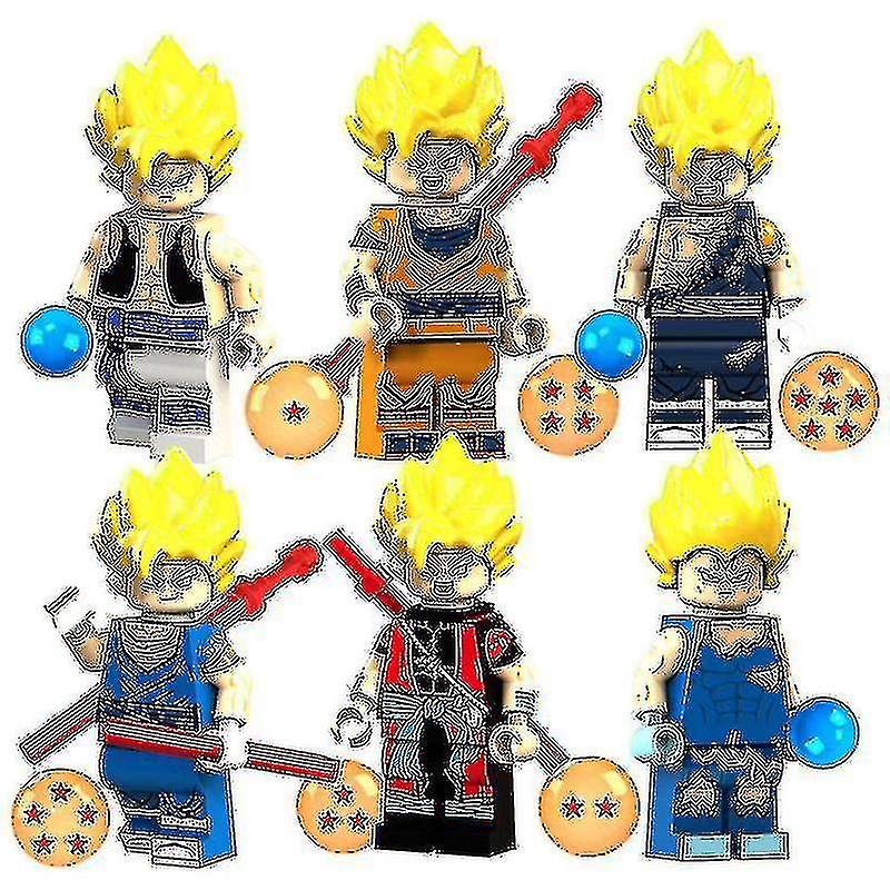 6pcs Dragon Ball Cartoon Super Saiyan Sun Wukong Vegeta Children Assembled Building Block Toys