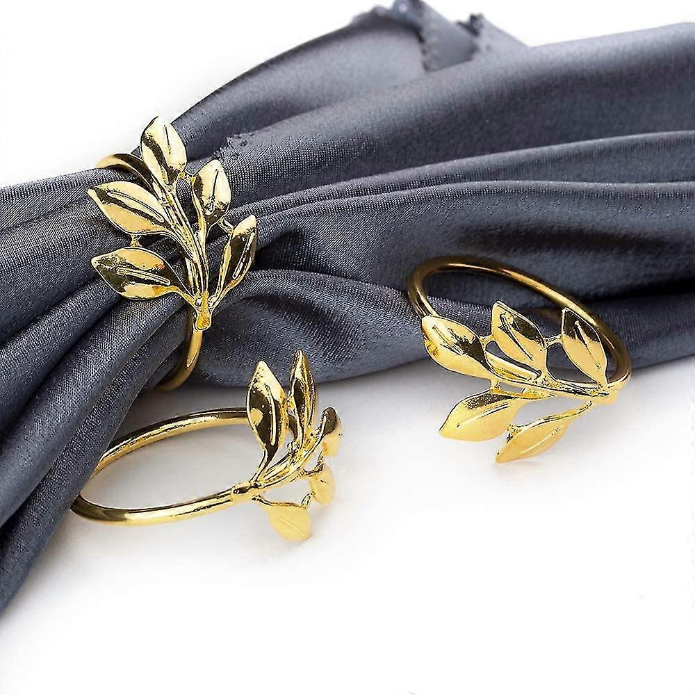 6pcs Gold Napkin Rings Round Napkin Holders Buckles For Wedding, Birthday Dinner Party, Family Gatherings, Table Decorations (gold Leaf Rings)