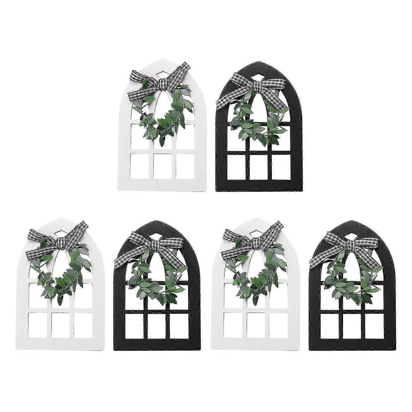 6pcs Wooden Farmhouse Window Tiered Tray Decoration Plaid Rustic Farmhouse Decor Cathedral Arch Win