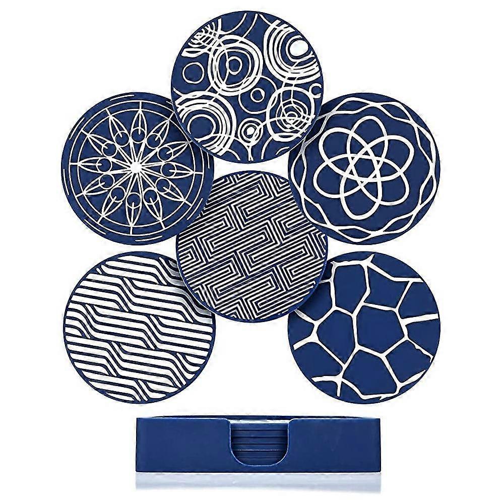 6pcs Drink Coasters,round Silicone Rubber Cup Pad With Storage Box,suitable For Bar, Table Decorati