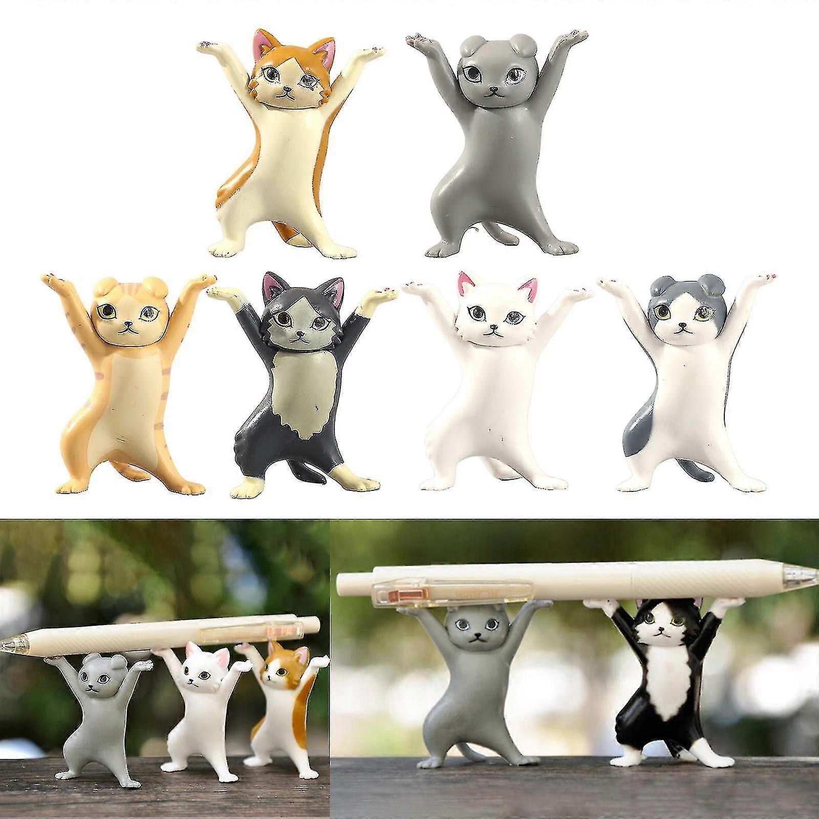 6pcs Dancing Cat Figurine Pen Holders - Funny Cat Ornament for Computer & Study Desk