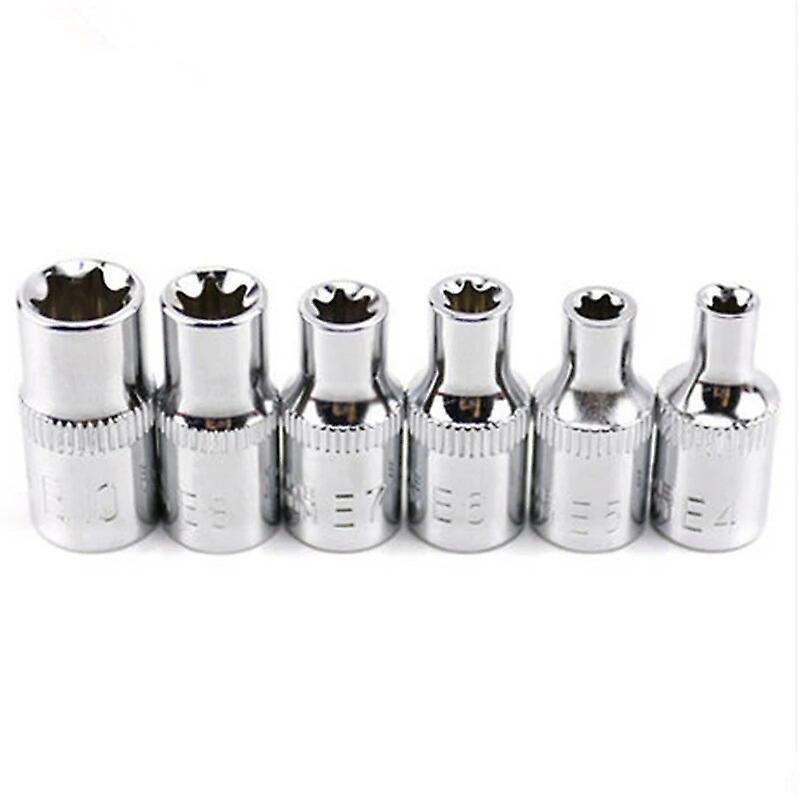 6pcs E-Socket Sockets 1/4 Inch Torx Star Female Bit E Socket Set E4 E5 E6 E7 E8 E10 Sockets Set Hand Tools Repair Tools~10812