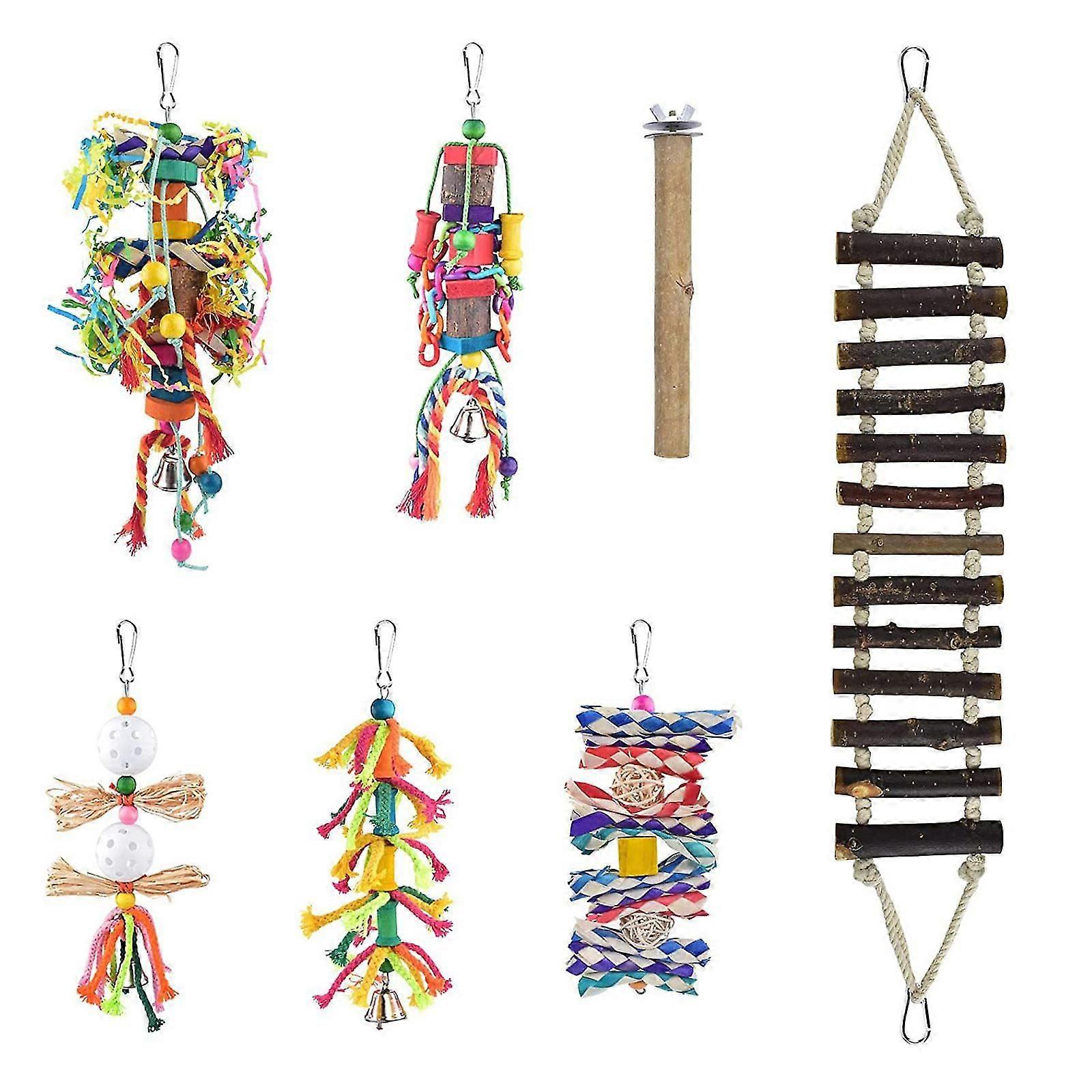 7 Pack Bird Chewing Toys Parrot Shredder Toy Wood Perch Ladder for Cockatiel