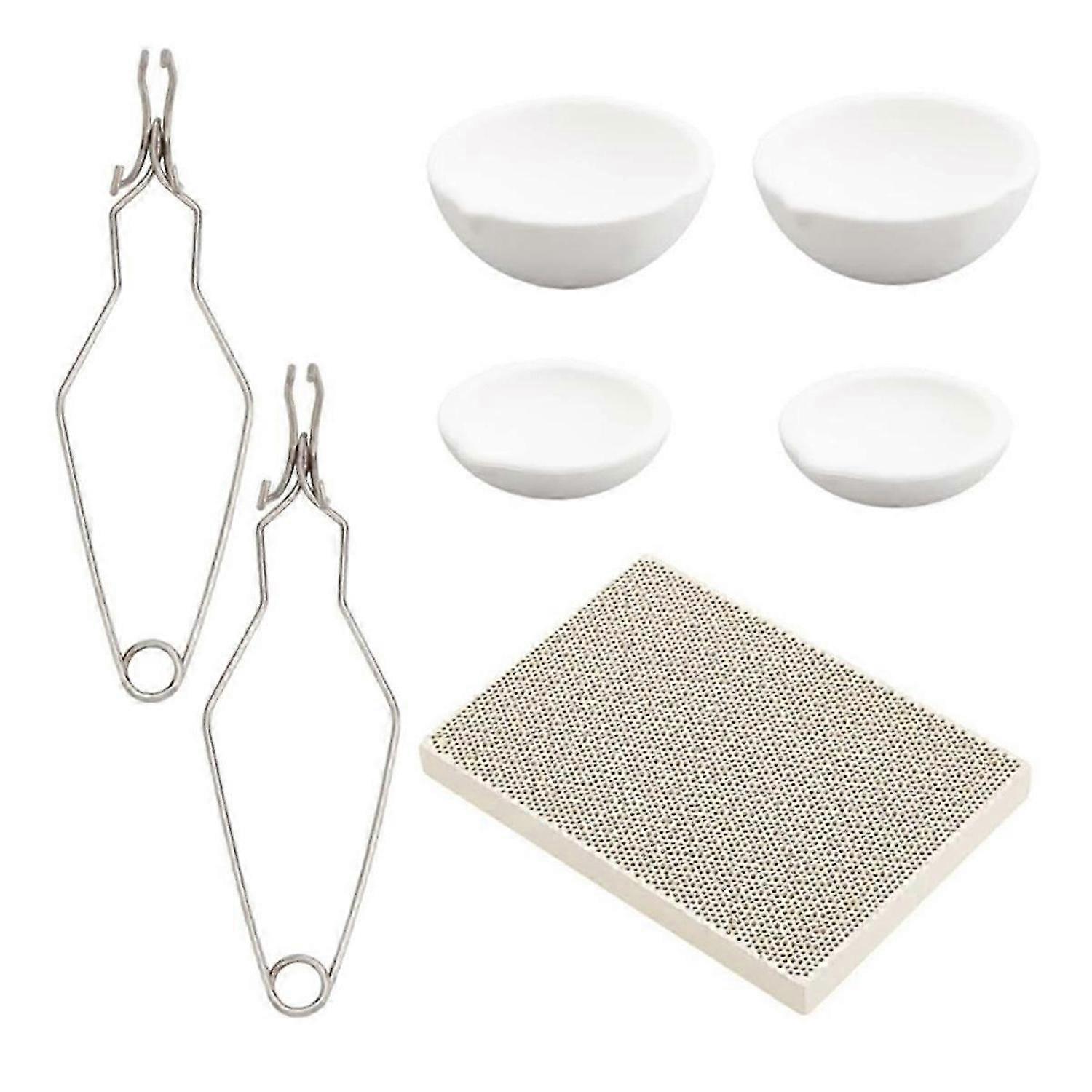 7pcs Melting Crucible Kit for Jewelry Silver Metal, with 4pc Ceramic Quartz Crucible Bowl Dish Cup Pot Whip Tongs Handle