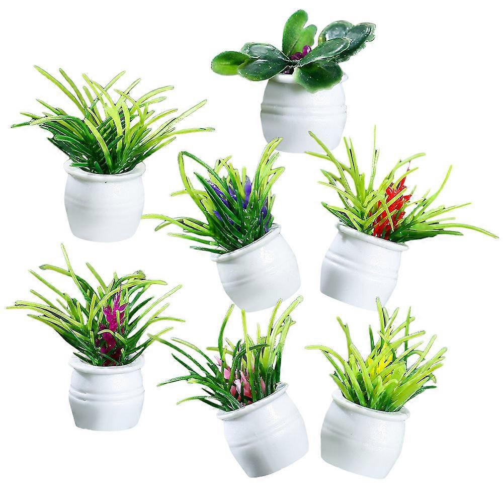 7pcs Mini Potted Plant Models Realistic Bonsai Decor for Dollhouses Home Desktop Ornaments Micro Landscape Accessories