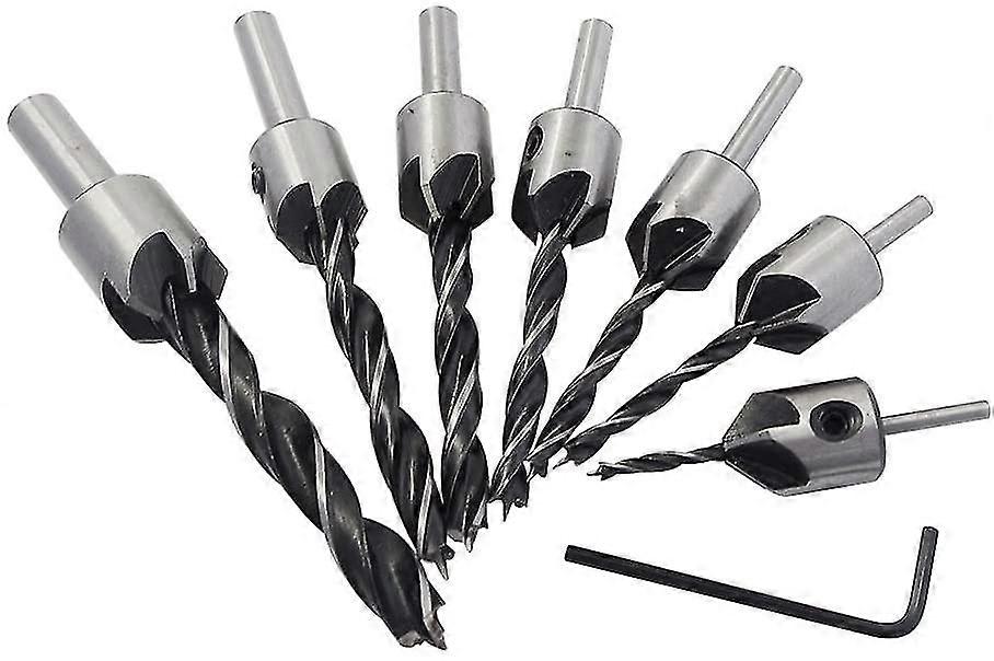 7pcs Countersink Woodworking Drill Bit 5 Flute Tapered Drill Bit Set Hss High Speed Steel Woodworking Reamer Chamfering To