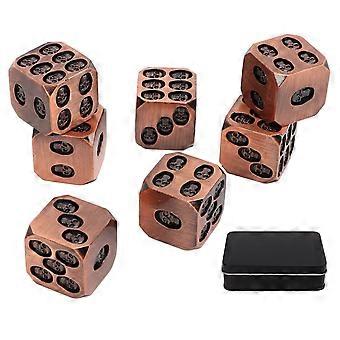 7pcs Metal Dice Set Exquisite Square Inlaid Skull Pattern Dice Board Game Props for Holiday Party Antique Red Bronze