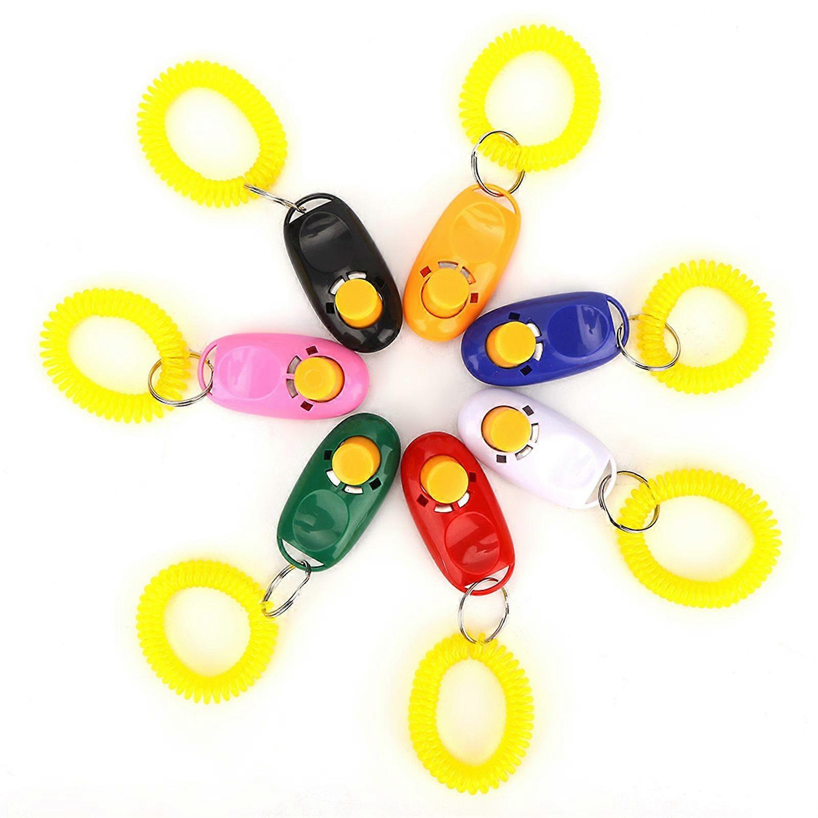 7Pcs Pet Dog Cat Puppy Adjustable Wrist Clicker Trainer Training Guiding with Rubber Ring