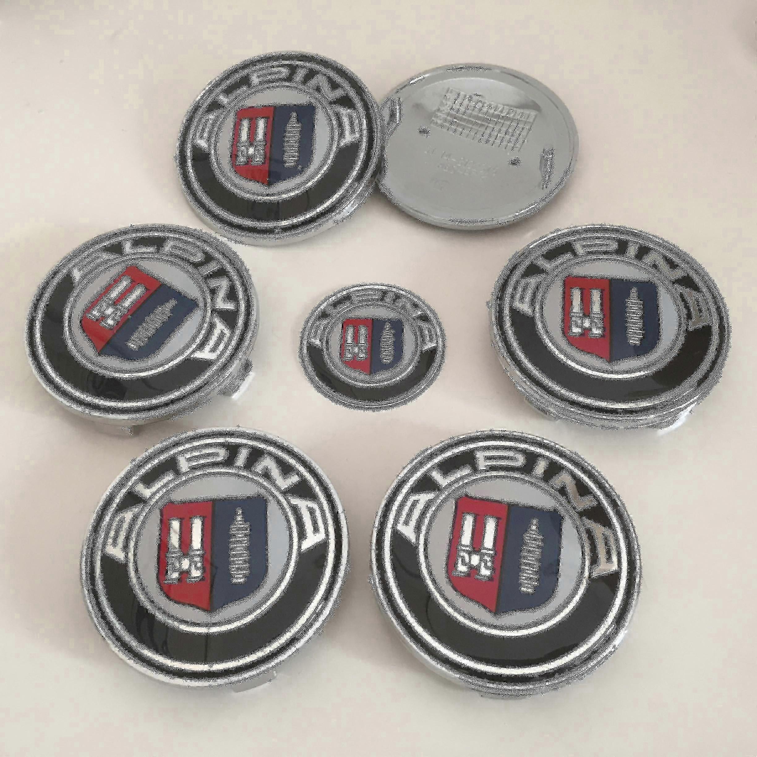 7pcs 3d Alpina Logo Car Front Hood Emblem 82mm+rear Badge 74mm+wheel Hub Cap 68mm+steering Wheel Sticker 45mm Cat Styling