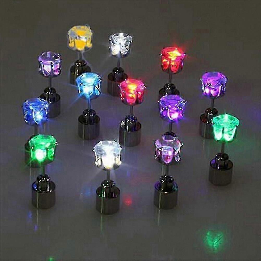 7pcs LED Glowing Flashing Stainless Steel Ear Studs Light Up Jewelry for Dance Party Unisex Accessories 7 Colors