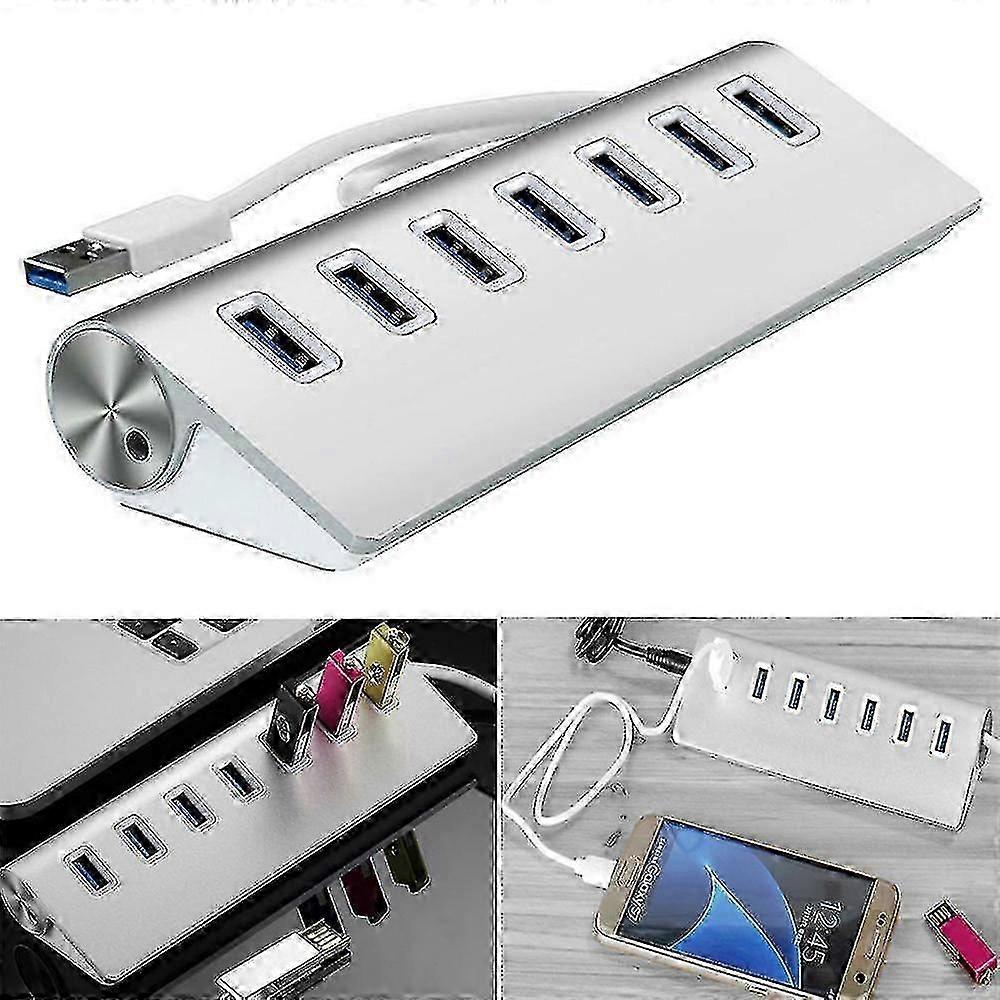 7 Ports Usb 3.0 Hub Splitter Power Adapter For Pc Laptop Desktop