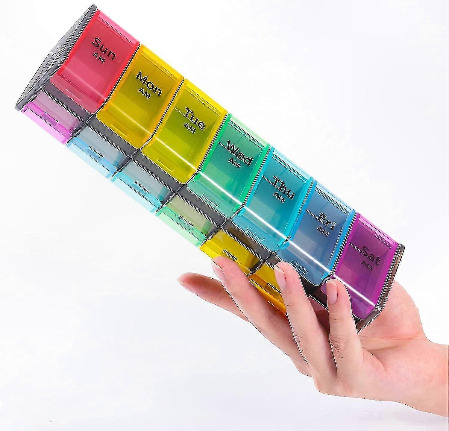 7-Day XL Pill Organizer with 14 Compartments for Daily Medication Management, AM PM Large Pill Case Container