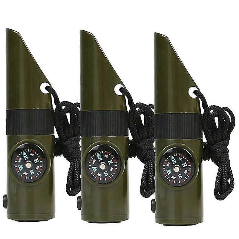 7-in-1 Emergency Survival Whistle Compass Thermometer Led Flashlight Magnifier