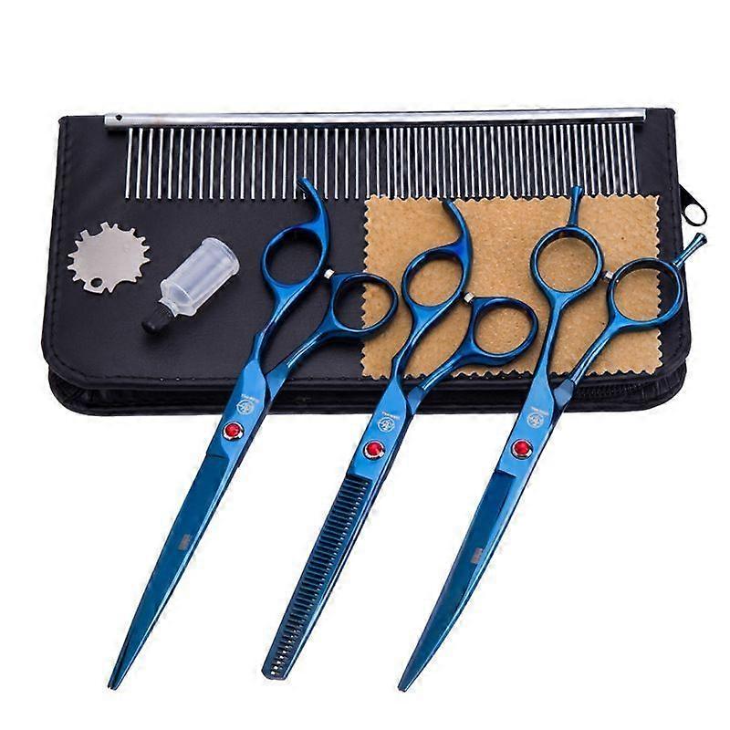 7.0 Inch Blue 3 Piece Pet Grooming Scissors Cut Hair Bend Curved Hairdressing Tools