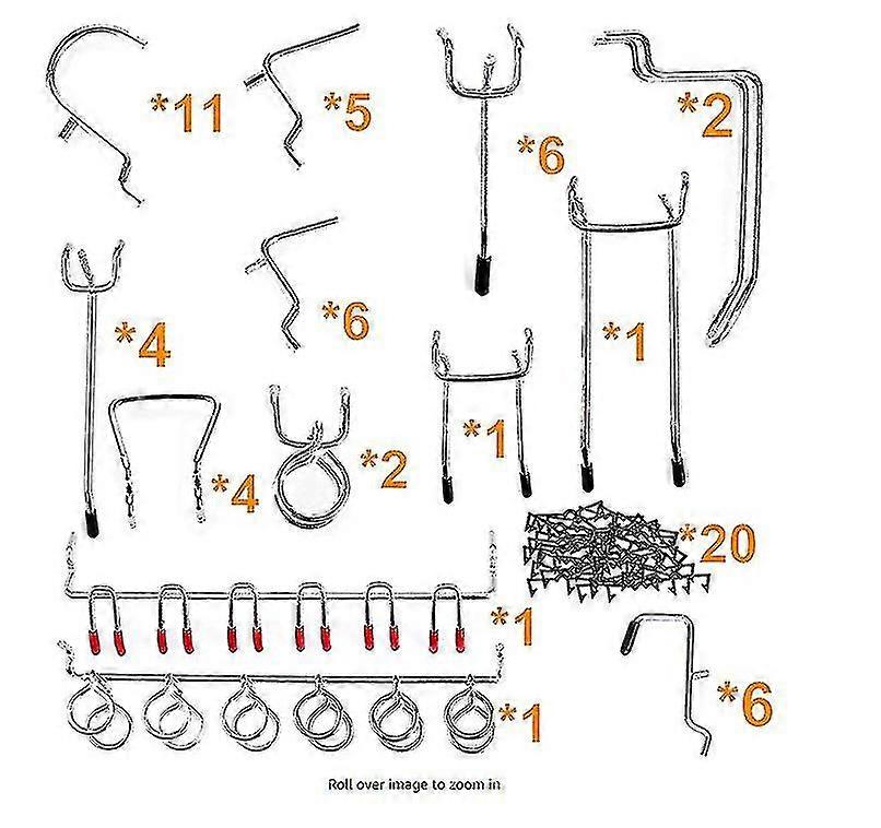 High quality matrials: The hook for perforated plate is made of mtal chrom and the galvanis steel plate is copper and chrome after dcaping and phosphating. The spcifications are diverse, sturdy and durable, with a high load capacity and will not fall off during use. Easy to use: These sturdy hooks for perforated panels are designed for easy installation and firm fastening. No need to use other tools to fix, and can be hung firmly by him. Multiple hooks can be installed to form a perfect storage space. Widely used: Tool wall hooks are suitable for supermarket shelves, garages, tablis, kitchens, tool sheds, basements and detail stores. It can help you organize various matrix tools, mnagers cleaning tools, painting tools, cls and various small objects.