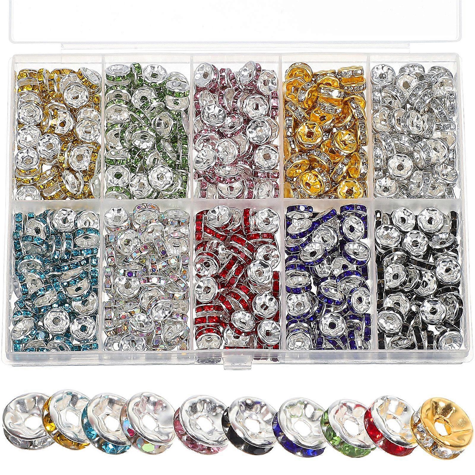 700Pcs/Pack Rondelle Beads Colorful Rhinestone Spacer Beads Flat Round Loose Beads for Jewelry Decorations