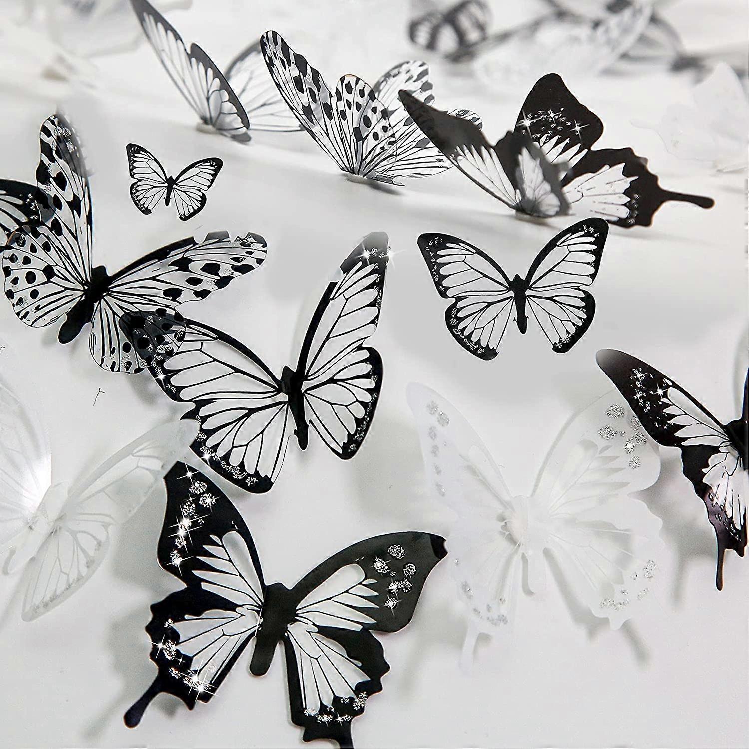 72 Pcs 3D Butterfly Wall Decor Stickers Black White Removable Butterflyfurniture Party