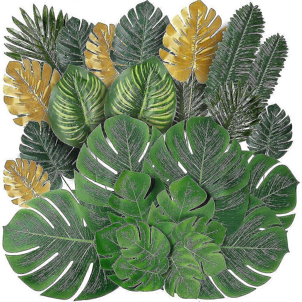 72 Pieces 8 Kinds Artificial Tropical Palm Leaves Tropical Leaves Monstera Leaves Jungle Leaf With