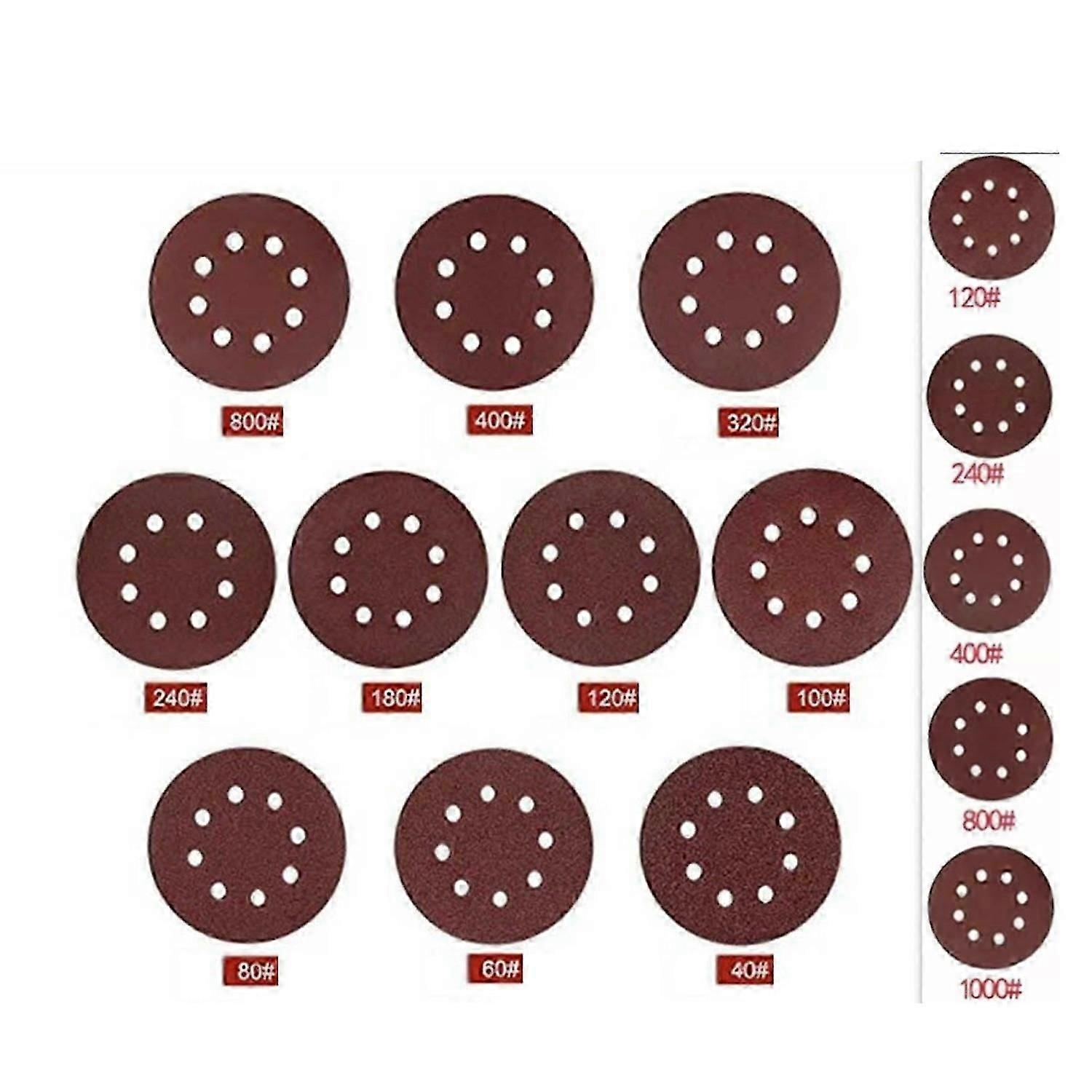 75 Pcs 5 Inch 8 Hole Sandpaper 1mm Thick 120 240 400 800 1000 Grit Sanding Disc for Rust Paint Burr