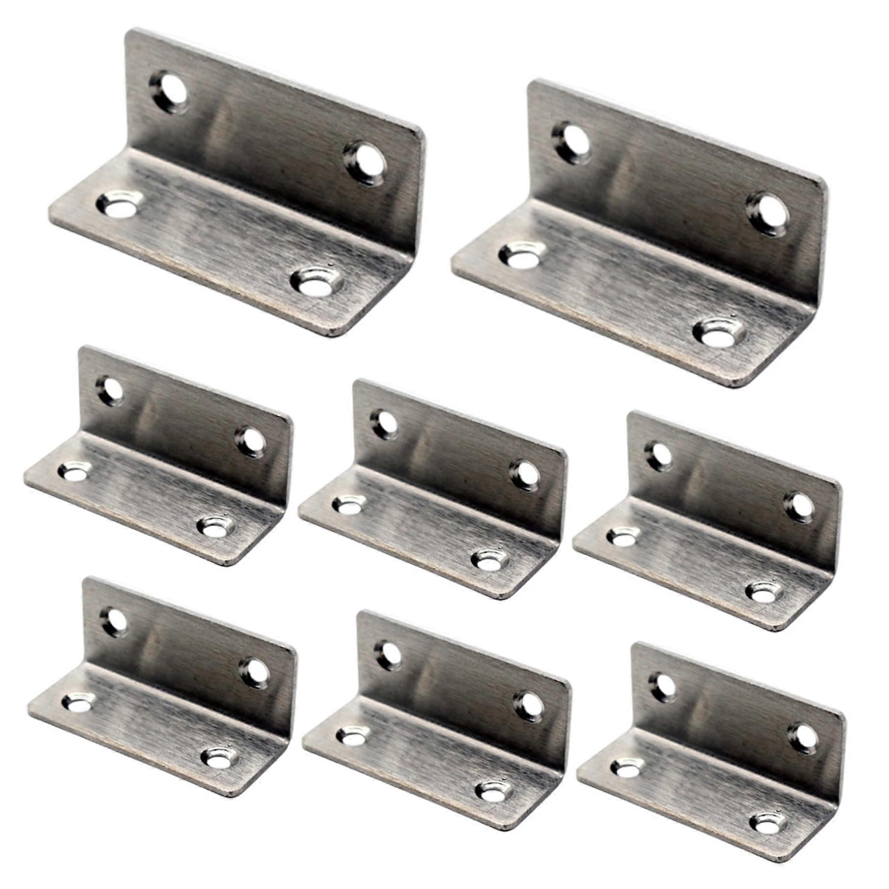 8 x Corner Brackets, 60 x 25 mm, Stainless Steel, Right Angle, L Bracket with Screws, Ideal for Wooden Furniture, Chair, Drawer Cabinet