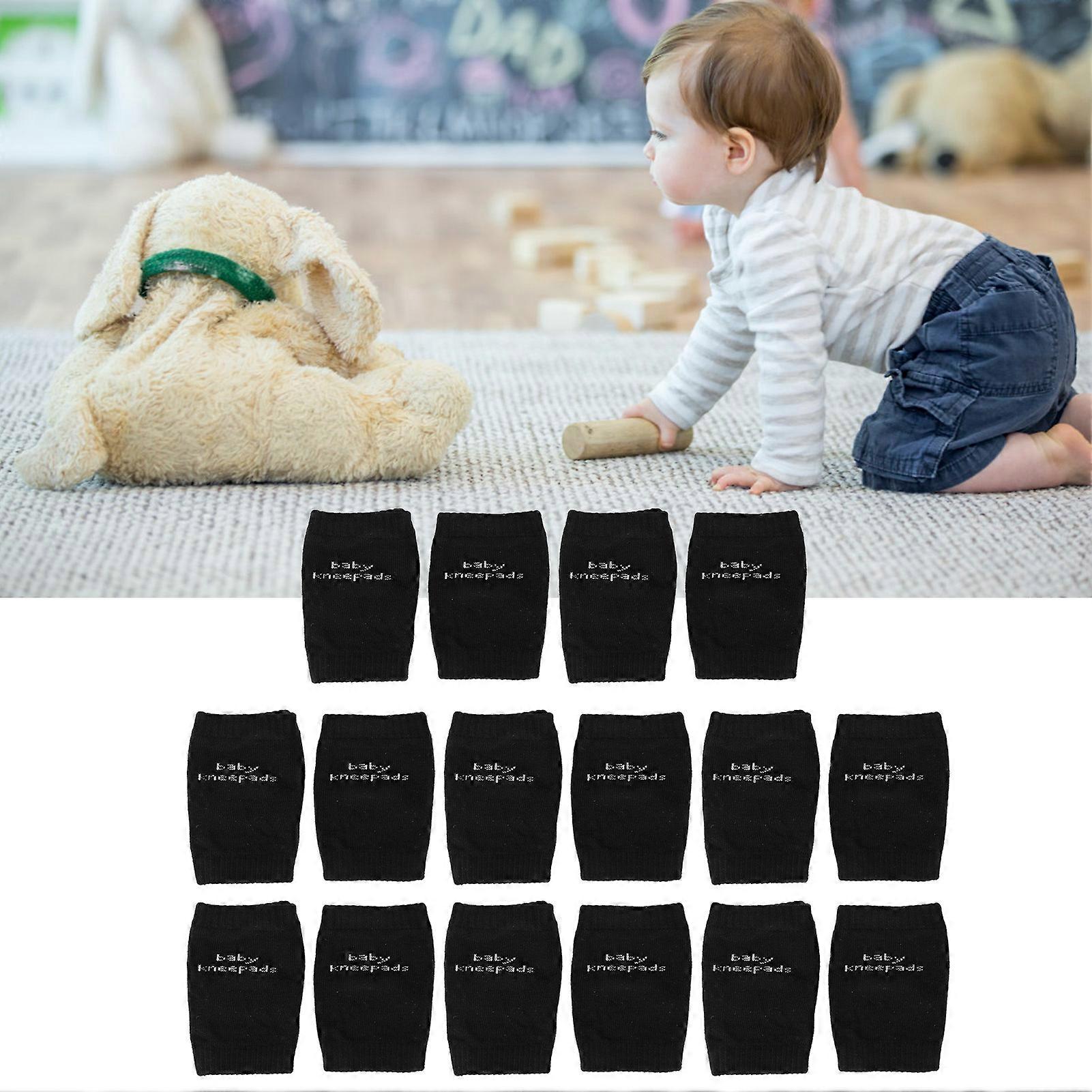 8 Pairs Crawling Baby Knee Pads Unisex Soft Cotton Safety Adjustable Toddler Knee Protector Black
