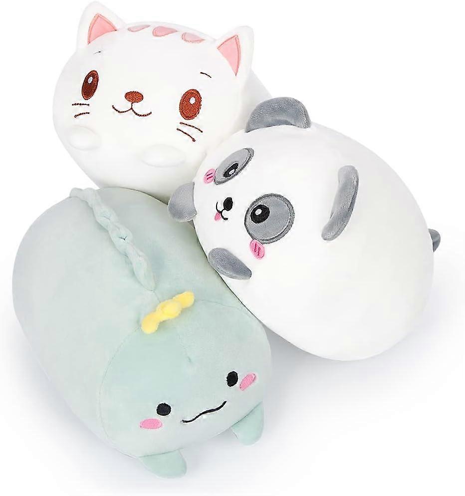 8 inch Plush Toys Set 3pcs Cute Panda/Cat/Dinosaur Plush Stuffed Animals Packs, Super Soft Cartoon Hugging Toy Gifts for Bedding Kawaii Pillow