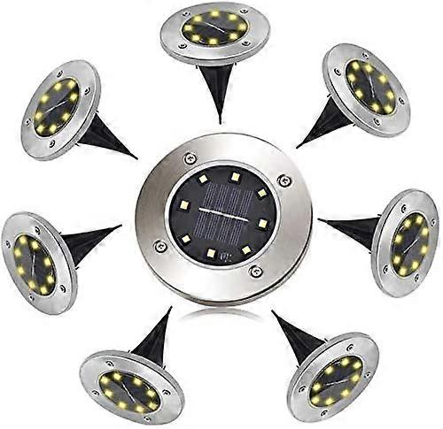 8 Pack Solar Floor Lights - Waterproof with Warm White Light, Ideal for Outdoor Pathway and Landscape Lighting, Energy Efficient and Durable Design.