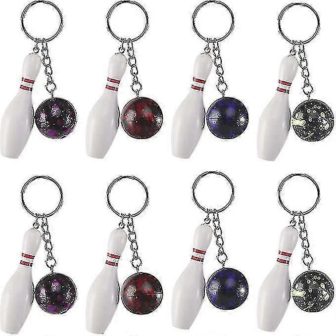 8pcs Bowling Pins Key Holder Bowling Key Pendant, Mini Bowling Keyring Bowling Party Bag Keychain For Friends Children Family